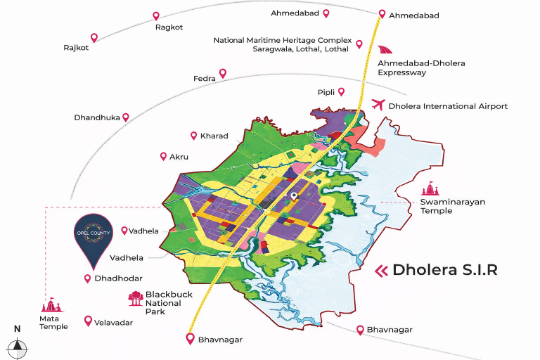 Adjacent to Dholera SIR, the location offers exceptional growth prospects, seamless connectivity, robust infrastructure development, enhanced investment potential, and proximity to emerging industrial, commercial, and smart city opportunities.